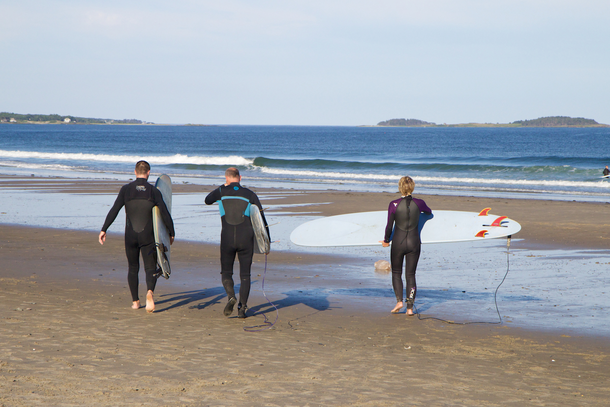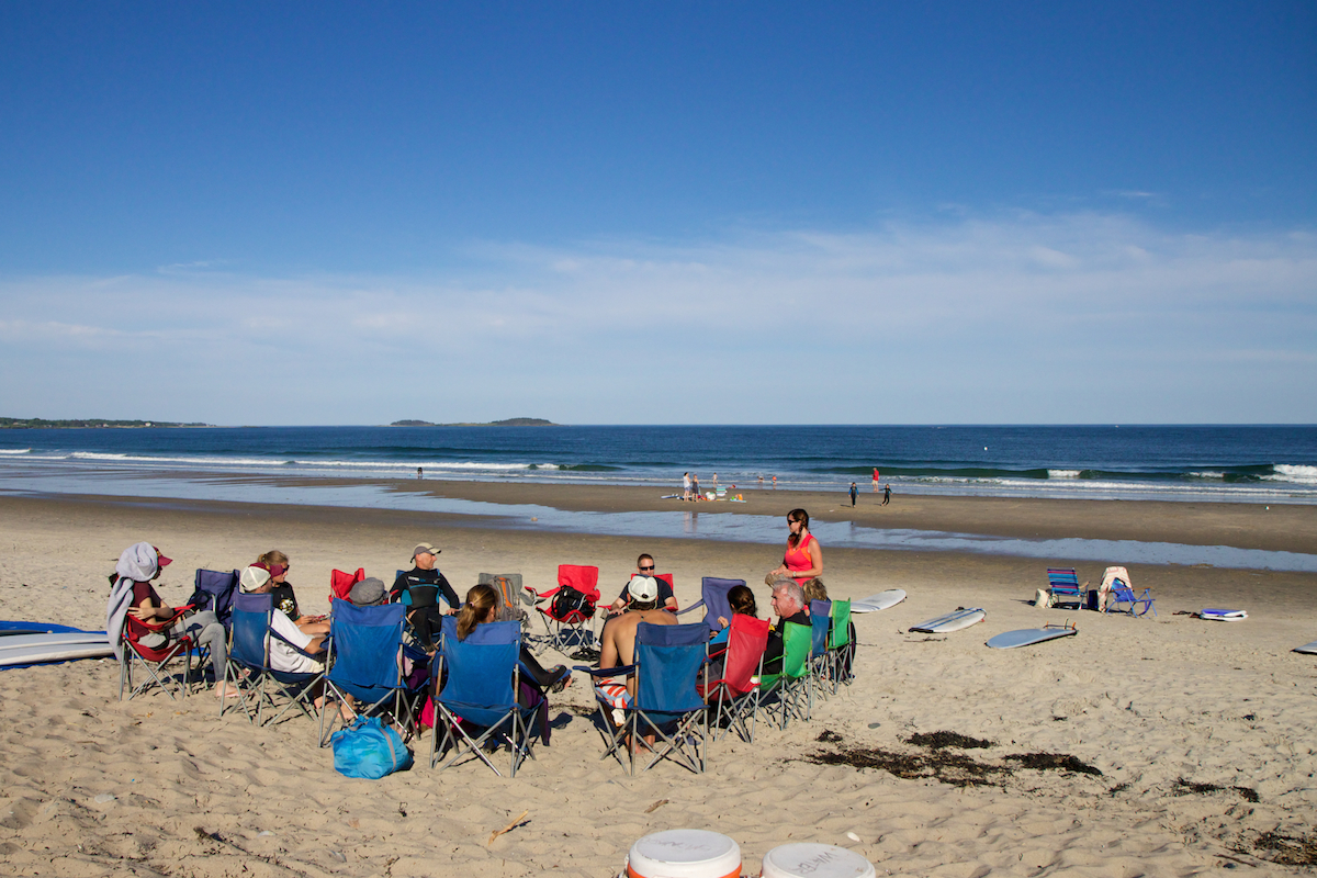 We'll break into groups of approximately 3 people for each surf session. At any time during the roughly 1.5 hour session, you can take a break on the beach where we'll have our camp set up with places to sit, snacks, and refreshments.