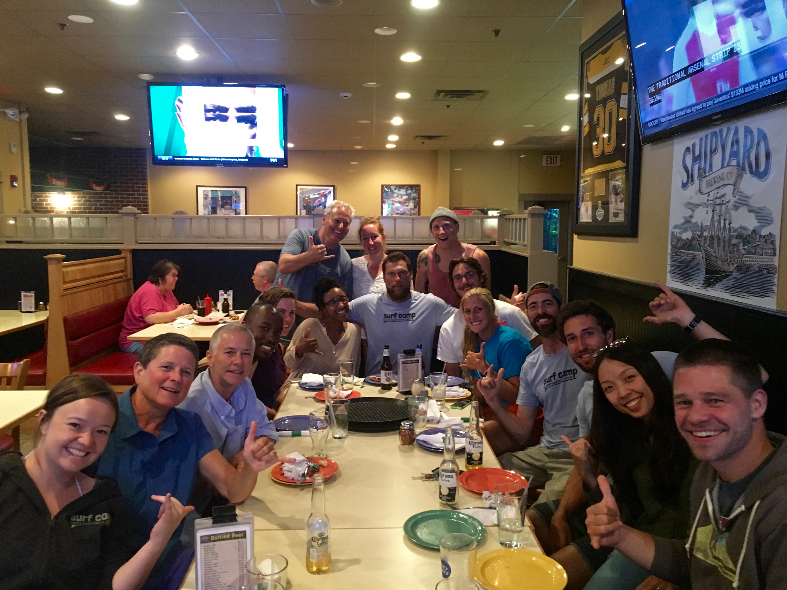 The small group environment (with the total program size being about 12 people) is a perfect setting for making new friends and future surfing buddies. After we're worn out from a good surf, there's no better way to wrap up the evening than by hanging out with a cold drink and watching the sunset. On the last day, we'll cap off our week of surfing with a celebratory pizza party on the beach.