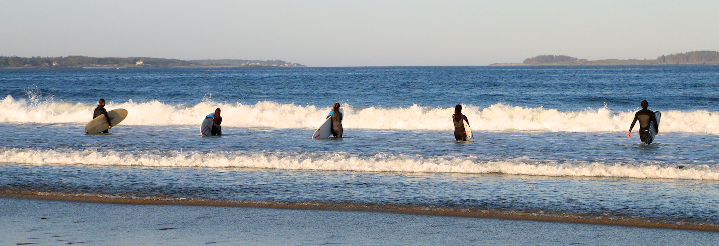 We will plan our surf sessions around the wind/wave conditions each day. Scarborough Beach is our "home base" and we will also plan to make at least one "surf trip" to other local surf beaches (possibilities include Popham Beach, The Wall (Hampton NH), Reid State Park, and Fortune's Rock Beach). We will explore new waves and conditions to challenge and improve our surf skills and comfort level.